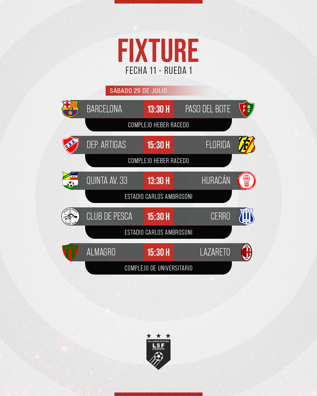 15:30 hrs. D. Artigas – Florida. Árbitros: Jonathan Guglielmone, Marcos Caballero, Ignacio Sañudo.