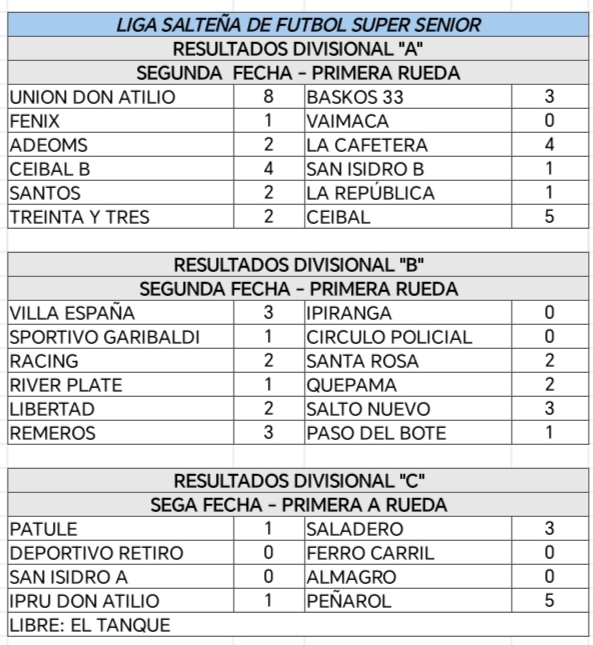 Resultados, posiciones y próxima fecha de la Liga de Fútbol Senior