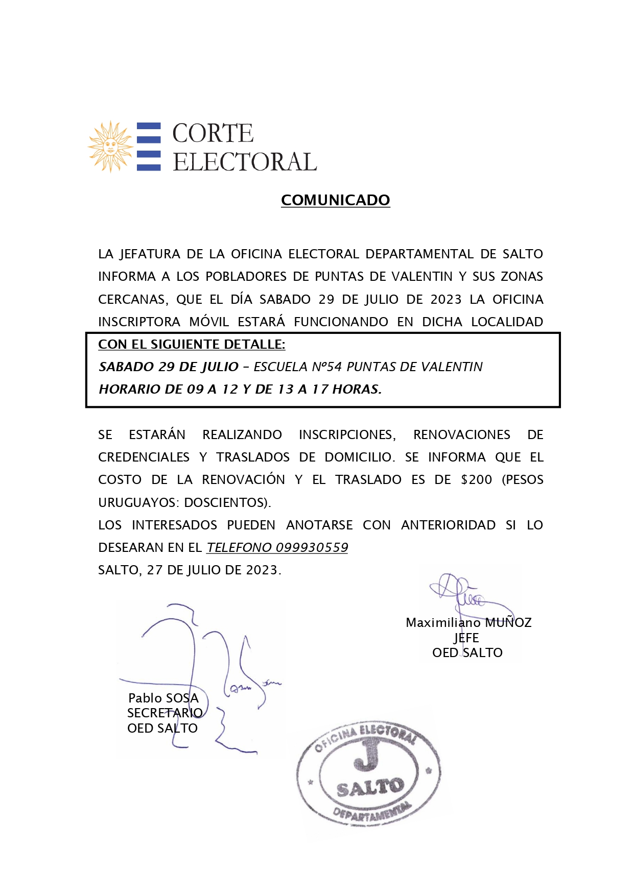 SERVICIOS A LA COMUNIDADTrámites de credenciales se realizarán este sábado 29 de julio en Puntas de Valentín 27 julio, 202327 julio, 2023 - Deja un comentario