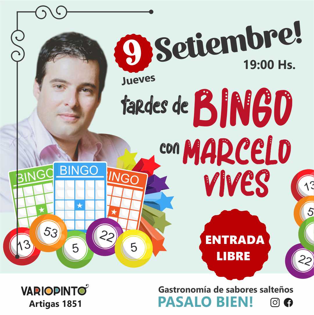 A las 19 horas Marcelo Vives nos trae otra TARDE DE BINGO para disfrutar de un buen momento, con premios y sorpresas!